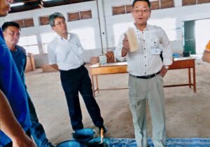 「当時のラオスは、仕上がりの美しさを求めていなかったんですよ。なにしろ、厚く塗ったモルタルを定規でなでて平面を出していたのです。だから、彼女が塗った壁は極端にいうと凹凸があちこちにあった。私のは日本流の真っ平らな壁です。その習慣の違いが私の敗因でした。負け惜しみかも知れませんが」